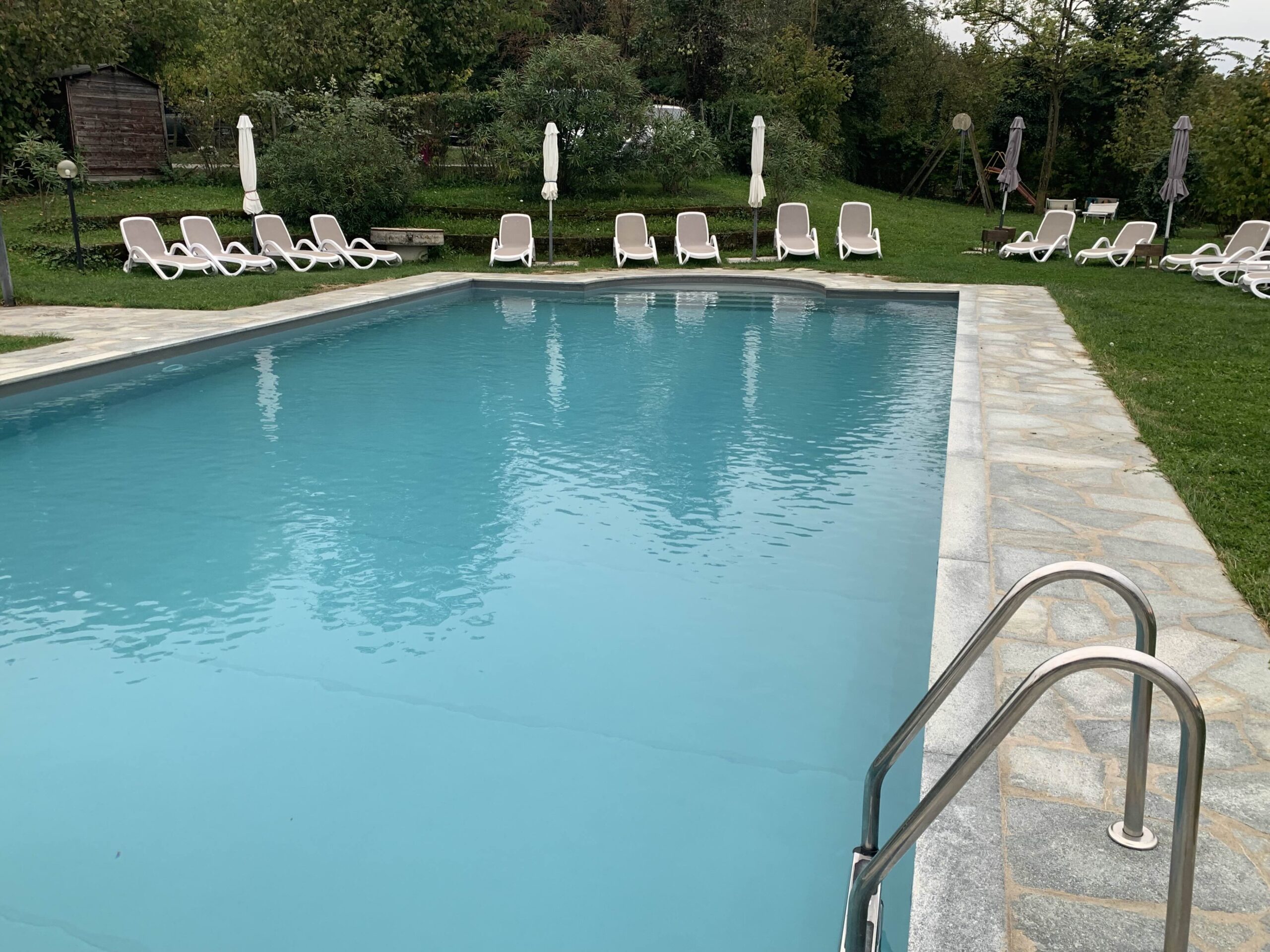 Campingplatz nahe der Weinstadt Barolo. Duschen, WC, Bar und Schwimmbad vorhanden. Schwimmbad war ungeheizt und Renate konnte kostenfrei schwimmen. An der Bar gibt es eine Riesenauswahl an Weinen. Fantastische. Viele Plätzer liegen im Schatten. Barolo in einer Stunde Wanderung zu erreichen .Schräg gegenüber gibt es ein fantastisches Restaurant Buon Padre. Von der Bar/Schwimmbad kann man bei entsprechender Sicht bis zu den Alpen schauen- Absolut fantastisch, wenn auch mit 38€ für 2 Personen nicht gerade günstig.