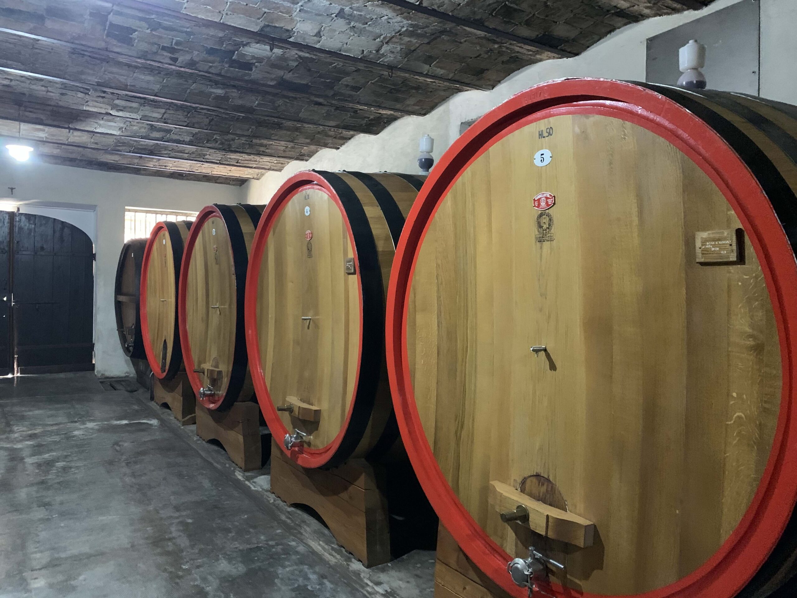 Da wir um 15:30 Uhr eine Weinprobe auf unserem Übernachtungs-Weingut haben, brechen wir zeitig auf. Unsere Gastgeberin Francesca führt uns durch den Keller und erklärt den gesamten Weinherstellungsprozess.