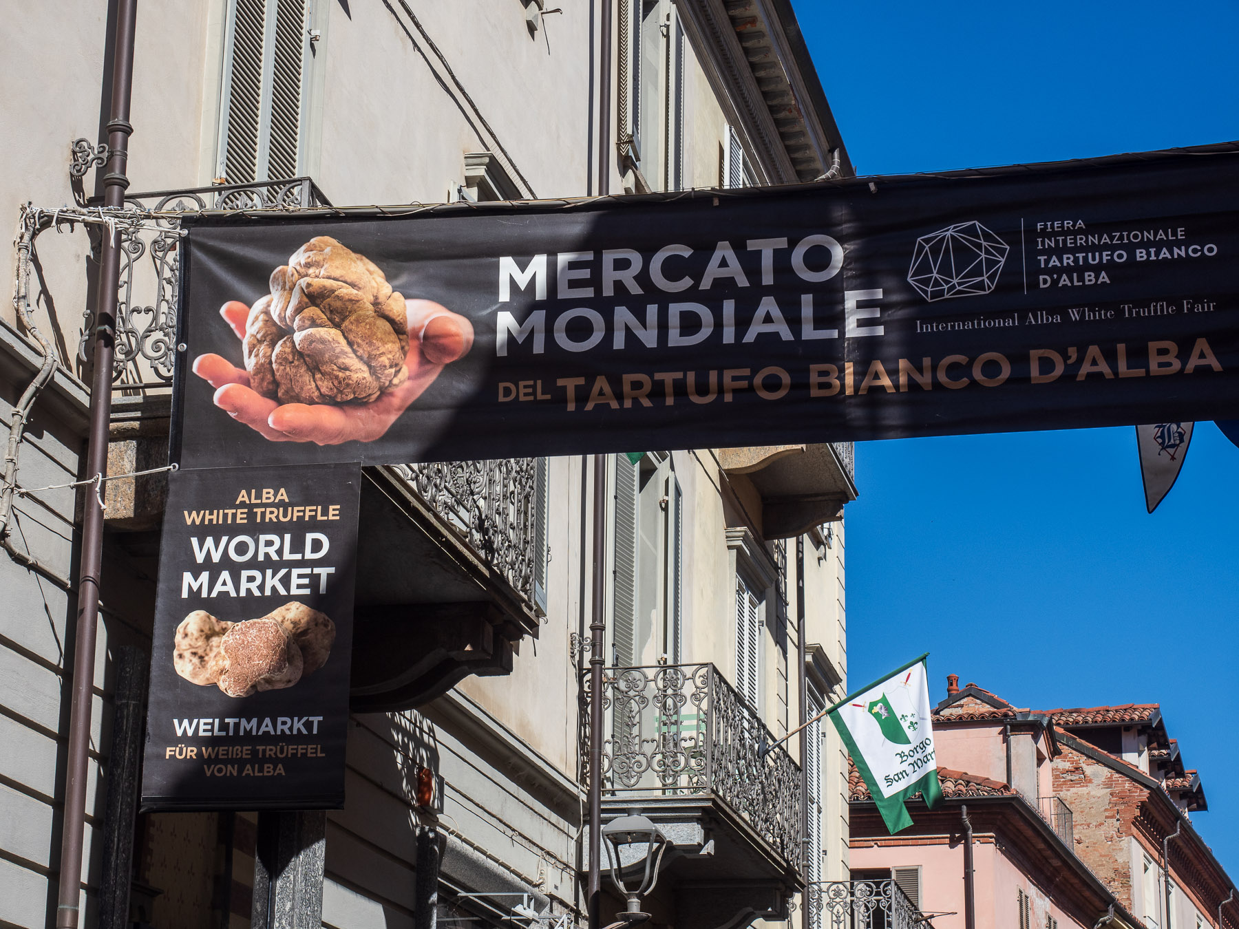 Alba gefällt uns deutlich besser als Bra. Die Stadt gilt als Hauptstadt des weißen Trüffels und ist ebenso berühmt für ihre Haselnüsse – nicht zuletzt, weil hier Ferrero seinen Sitz hat. Man sagt, dass in den Ferrero Rocher tatsächlich Haselnüsse aus der Region verarbeitet werden.