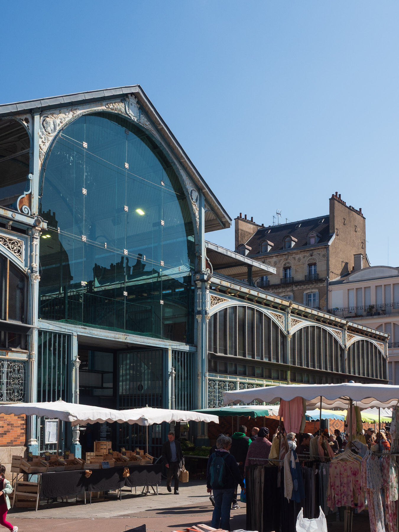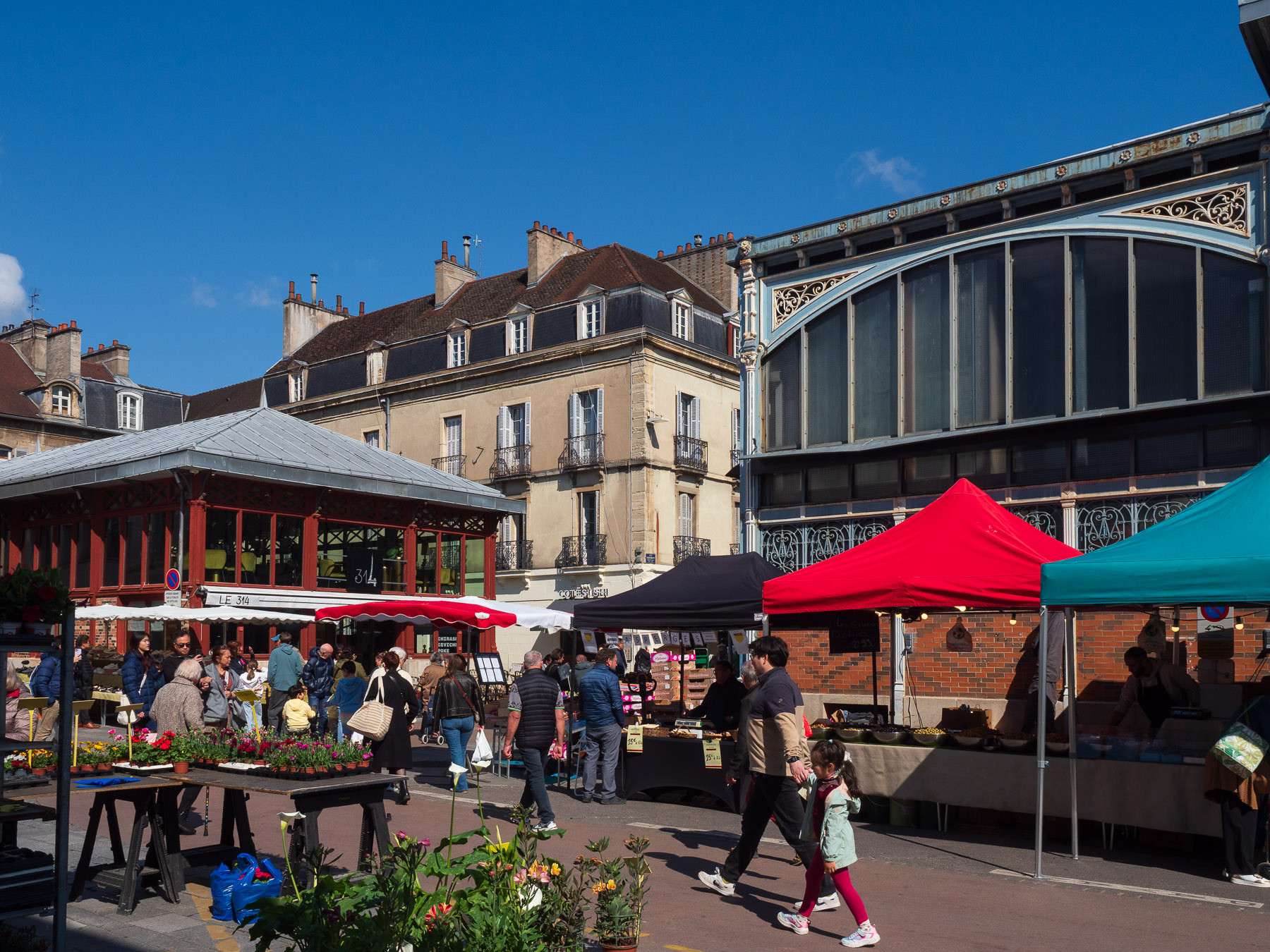 Mit inzwischen ordentlich beschwerten Rucksäcken drehen wir noch eine Runde um die Markthalle und suchen uns dann ein sonniges Plätzchen für ein kleines Lunch. Käse und Baguette heben wir uns für später auf – man muss ja Prioritäten setzen.