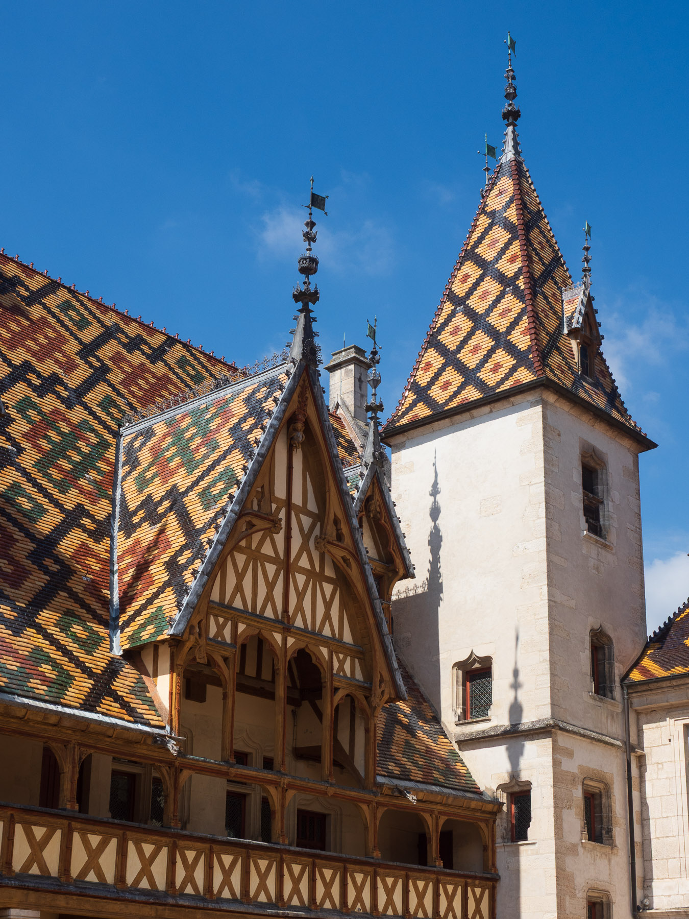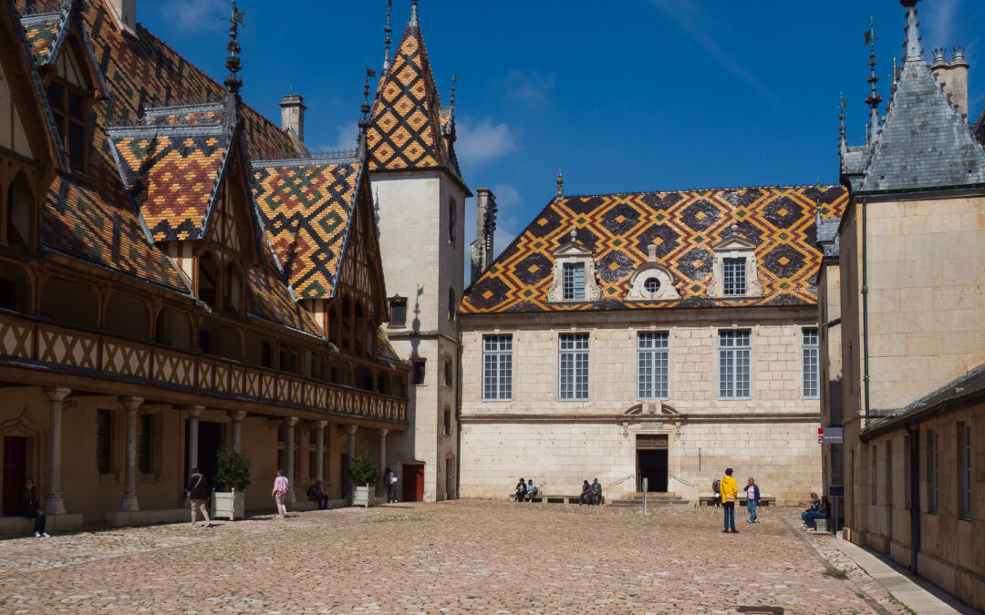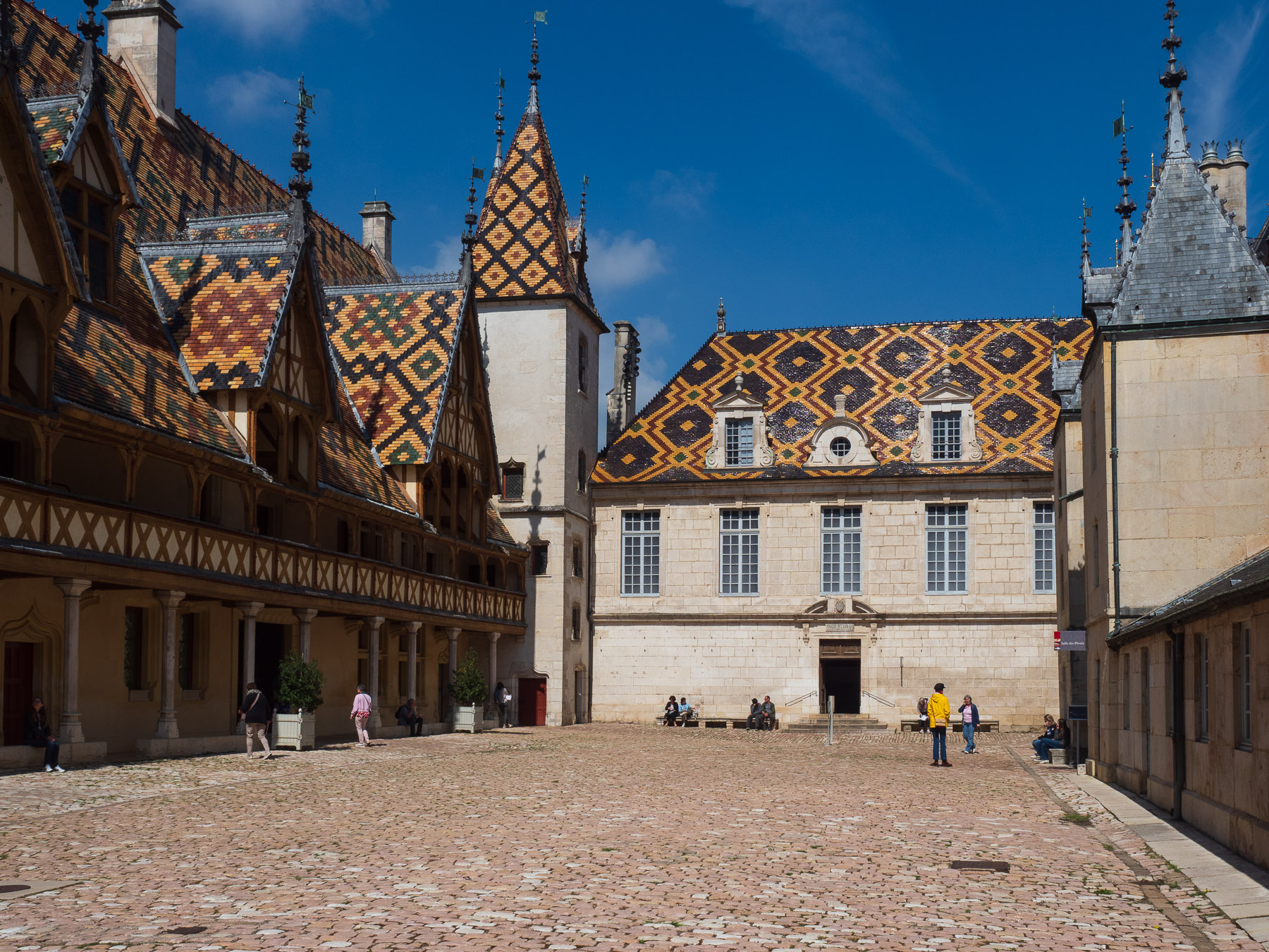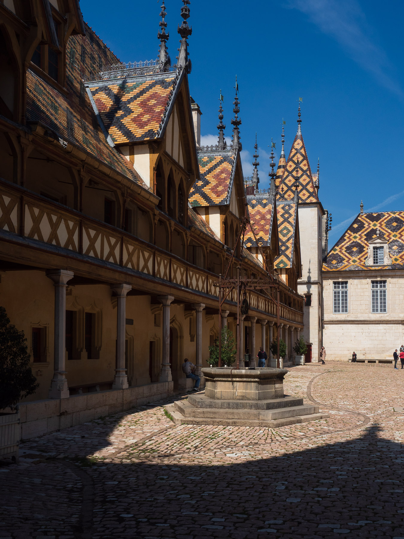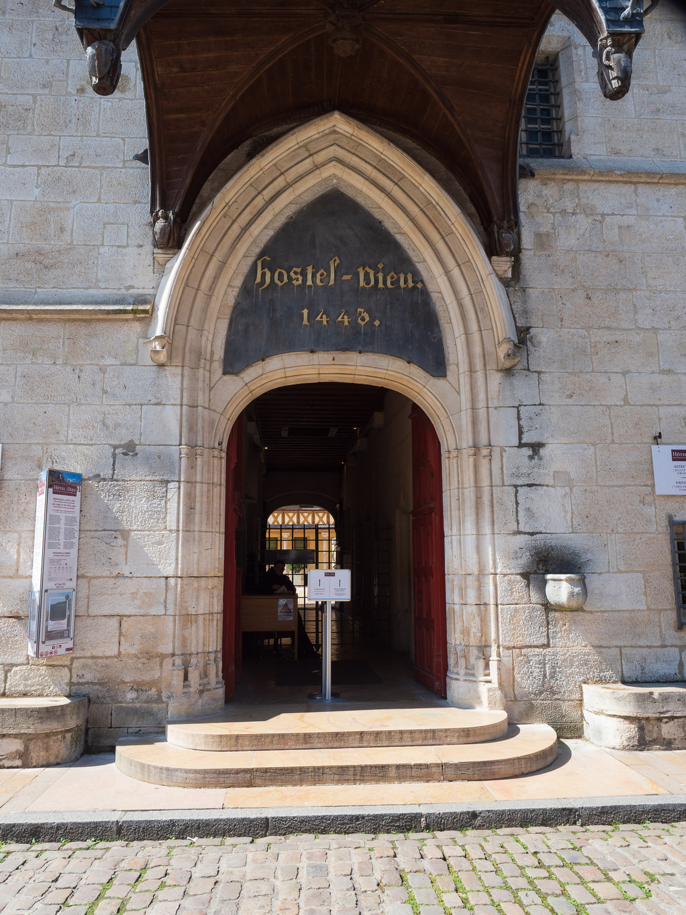 Unser eigentliches Ziel ist heute das berühmte Hôtel-Dieu de Beaune. Erbaut wurde es 1443 von Nicolas Rolin, dem Kanzler des Herzogs von Burgund, und seiner Frau Guigone de Salins. Mit ihrem Vermögen wollten sie etwas schaffen, das sie überdauert – gelungen kann man sagen.