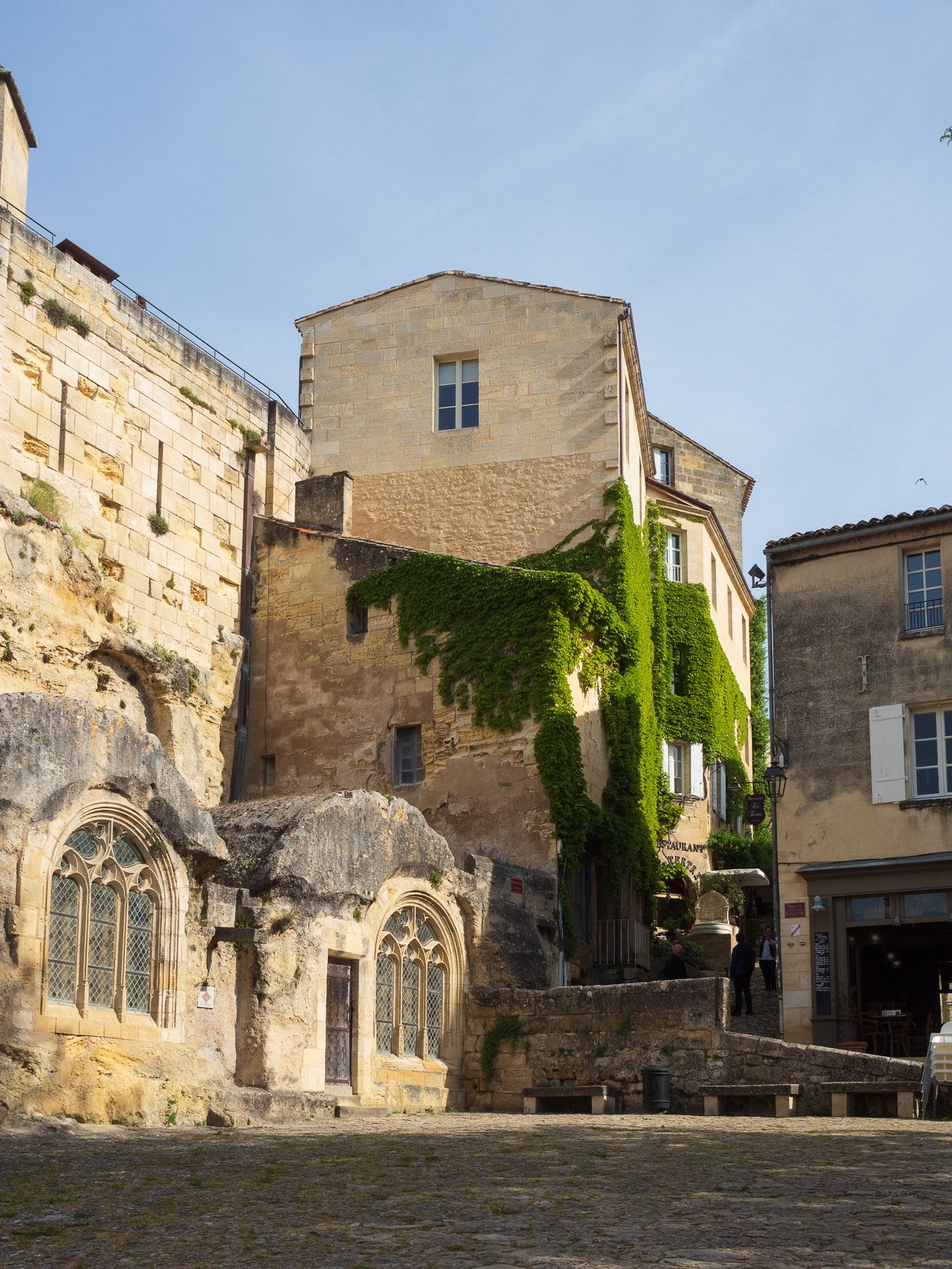 Im 12. Jahrhundert wurde hier großflächig Kalkstein aus dem Berg gehauen – ein wichtiger Wirtschaftszweig jener Zeit. Dabei entstanden Höhlen, Tunnel und Grabkammern. Insgesamt soll sich unter Saint-Émilion ein unterirdisches Netz von rund 100 Kilometern Länge erstrecken. Diese sind heute perfekte Lagestätten für die Reifung der Weine, gleichmäßige 12-14 Grad, 80% Luftfeuchtigkeit, keine Erschütterungen. Perfekt!