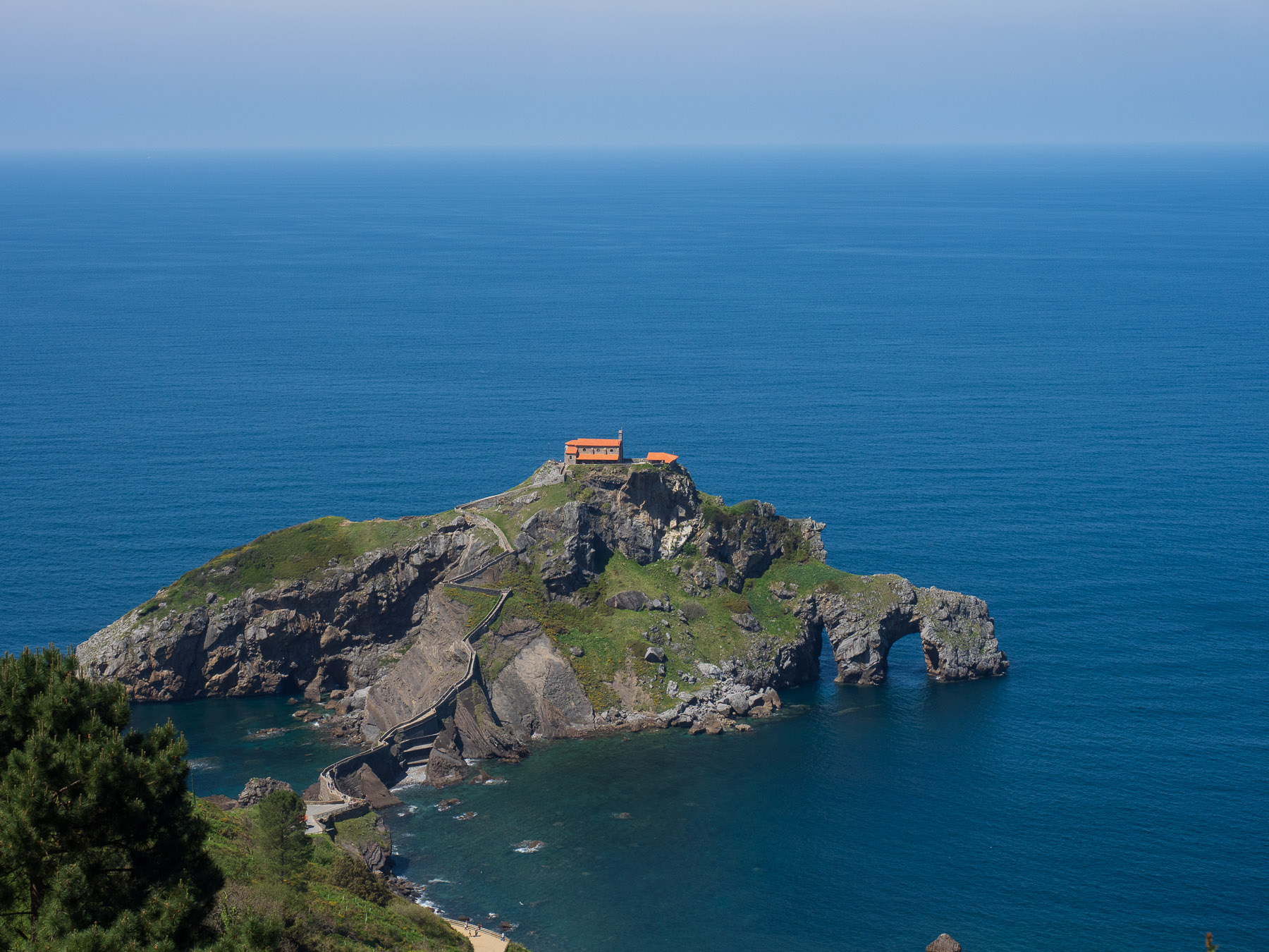 Also Plan B: Wir drehen um und laufen zu einem Aussichtspunkt. Von dort haben wir einen wirklich großartigen Blick auf Gaztelugatxe. Nach kurzer Beratung sind wir uns einig: Das reicht uns völlig. Die Aussicht ist top – und wir sparen uns den Trubel.